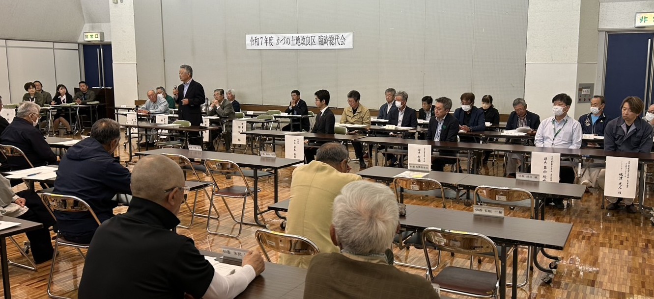 本日はお招きいただきまして誠にありがとうございます。まず令和7年度かづの土地改良区総代会が盛大に開催されましたことを心よりお慶び申し上げます。