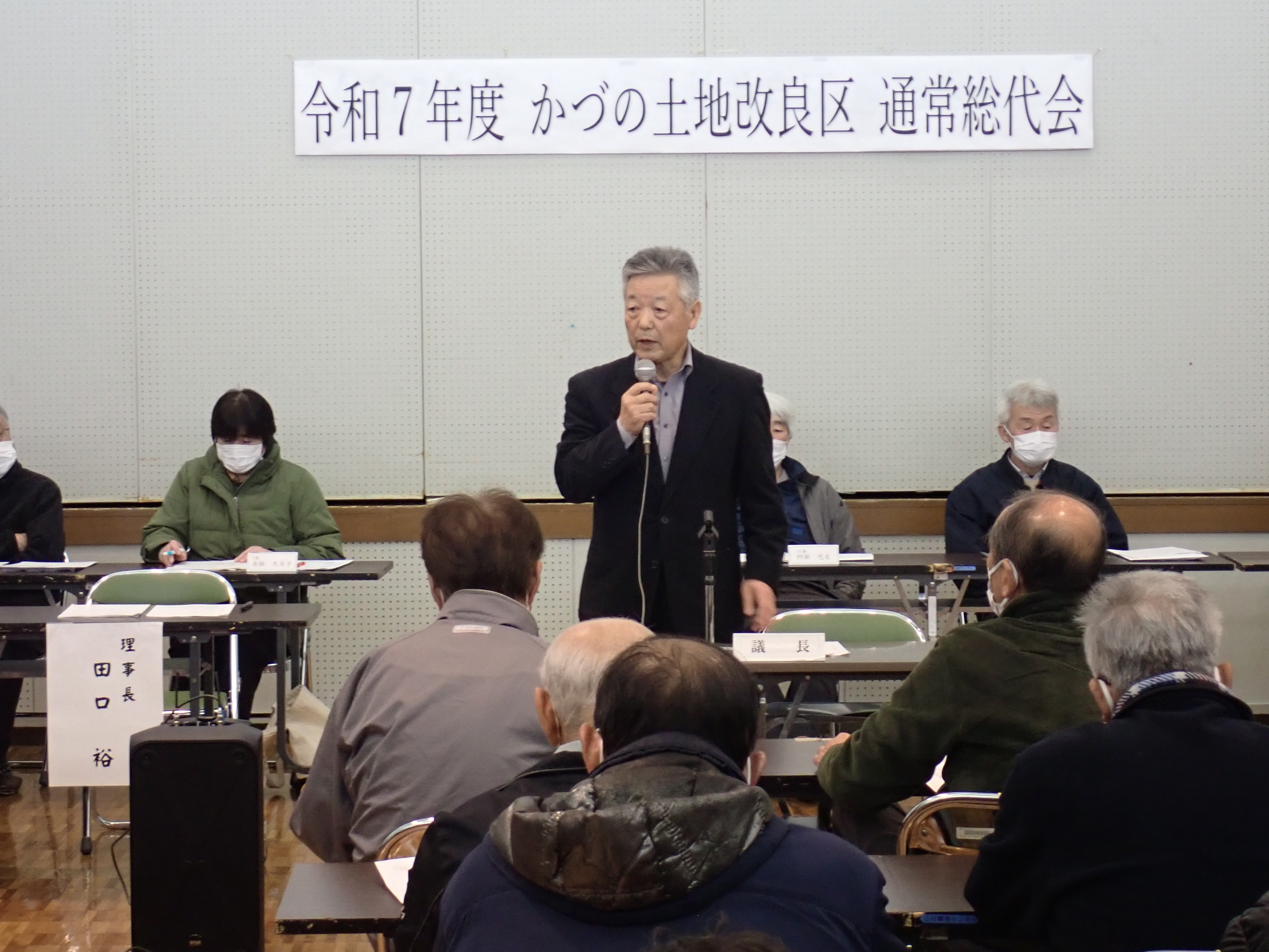 もう一点は、前々から皆さんに報告していますが、鹿角市の農地のかづの土地改良区がカバーするエリアが53%位です。令和8年度の中で皆さんに今回事前に資料を渡していますが、賦課金の増額を計画しています。先ほど話したように、土地改良区も対象エリアなり事業を増やしながら、財政的な確保を含めて地域への貢献をしていかなければならないということと、あわせて今回賦課金の増額ということで組合員の方にお願いをしたいと思っています。来年度から1,000円増額するということで今回提案をさせて頂きます。議案の中で詳しくその内容を説明しながら、提案したいと思っていますが、いずれ農業の状況なり、鹿角の状況をこの10年位の中で今変われるところに来ています。そういう意味で総代の皆さん、役員の皆さんには大変ご苦労かけますが、5年先、10年先を見据えながらこの地域をどうやって次の世代に受け渡していくかということを十分配慮して頂きながら取り組みをお願いしたいと思っています。大事な5か年の時期になりますので今日も議論の程どうぞよろしくお願い致します。